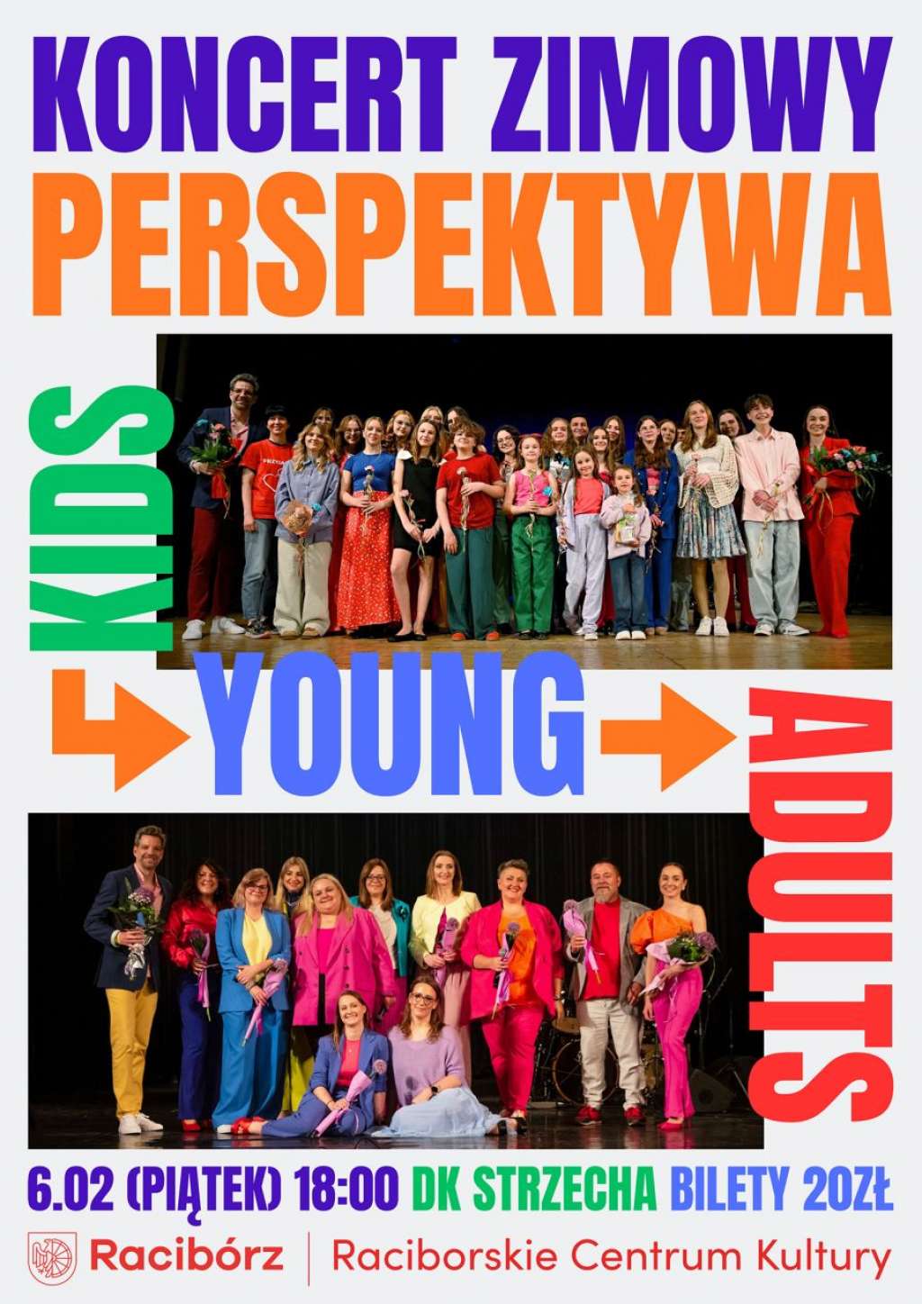 W nadchodzący weekend Raciborskie Centrum Kultury zaprasza na wyjątkowe wydarzenie muzyczne, które wniesie w zimowe wieczory odrobinę magii i radości. 6 lutego o godz. 18:00 w Domu Kultury Strzecha w Raciborzu odbędzie się koncert zespołu Perspektywa, a na scenie wystąpią trzy grupy: Kids, Young oraz Adults.